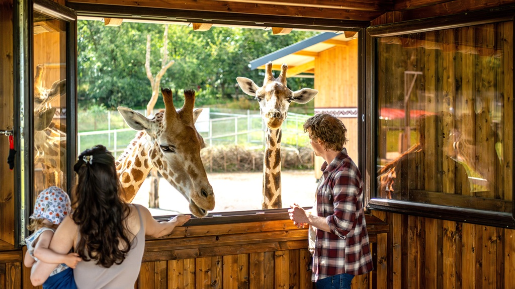 Giraffenbesuch im Tier-Erlebnispark Bell – Foto: Dominik Ketz / Hunsrück-Touristik GmbH